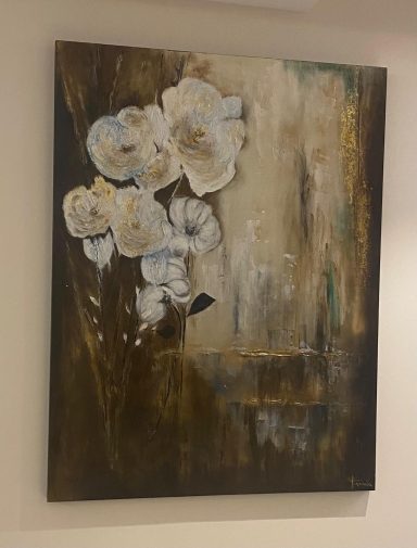 Soy autodidacta. Pinto guiada por la intuición, dejando que la emoción fluya sin reglas, buscando crear sensaciones en quien las contempla.